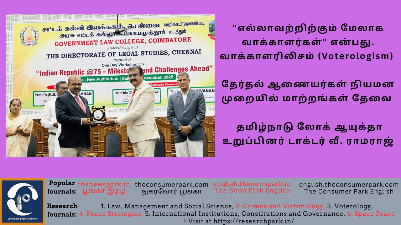 “Voters above all else” is the central idea of ​​voterologism. Changes are needed in the appointment system of Election Commissioners – Tamil Nadu Lokayukta Member Dr. V. Ramaraj